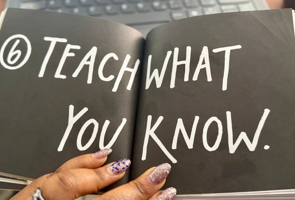 This chapter also connects back to Chapter 4, which talks about sharing your inspirations, the people, ideas, and sources that shape our work. When we teach, we often draw from those same inspirations, whether consciously or not.