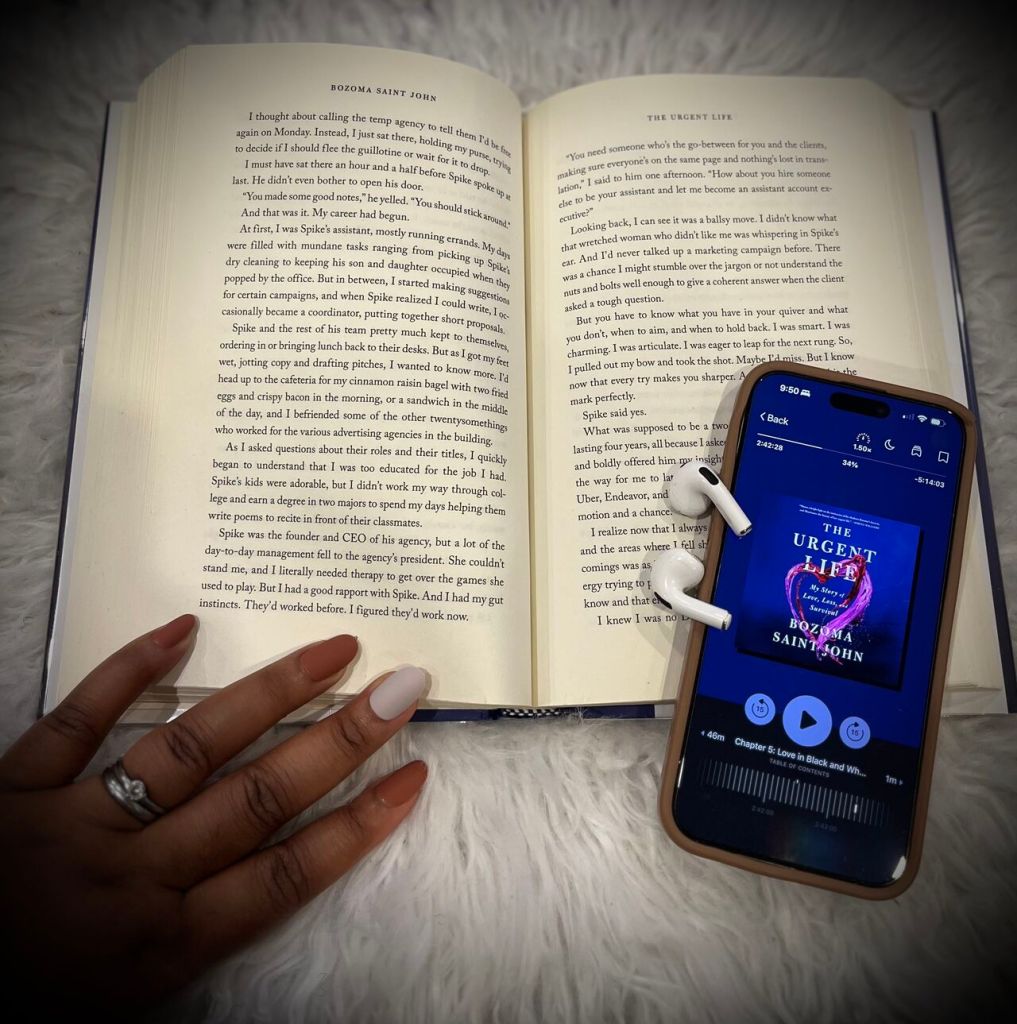 Let’s start with the color of the book itself Purple. One of my favorite colors that symbolizes royalty, strength, wisdom, and bravery, qualities that resonate deeply with Bozoma’s story. After completing the physical book, I felt a strong urge to listen to the audiobook as well. Considering the message this book carries, there is something deeply powerful about hearing the author tell her own story and reflect on the lessons she has drawn from her life. Listening to Bozoma narrate her experiences makes the journey feel personal, as though she is speaking directly to you.