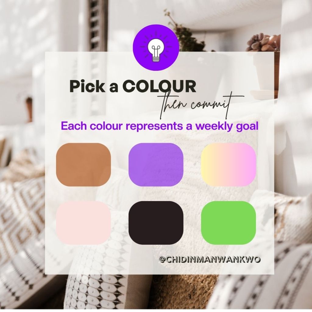 Before you continue, pick one colour from the image below. Any colour choosen represents one area you will intentionally focus on this week.